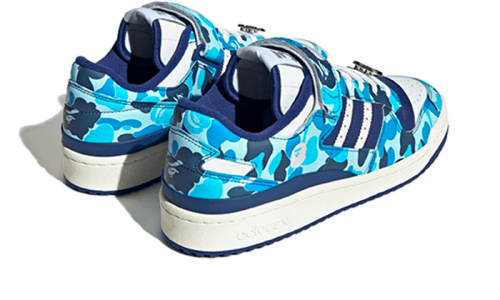 To celebrate its 30th anniversary and 20 years of collaboration with Adidas, BAPE and the German brand unveil a new Forum 84 Low sneaker in partnership with Adidas. The Adidas Forum 84 Low Bape 30th Anniversary Blue Camo features the usual leather upper construction with TPU overlays. The BAPE touch comes from the blue camouflage pattern on the upper, a Japanese firm logo on the side panel, and silver lace deubrés that combine the BAPE logo with the “30” motif. This silhouette comes with a special box and extra laces matching the shoe’s colorway.
