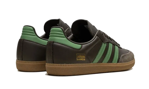 The adidas Samba OG Shadow Olive Green features a dark olive leather base, complemented by a tonal suede mudguard. Golden details like the “Samba” on the side panel elevate the upper, along with the green three stripes matched to the heeltab. To top it off, a gumsole adds a retro touch to this pair.
