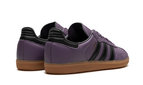 Timeless model originally designed for football, the Adidas Samba makes a comeback in a new version. The Adidas Samba OG Shadow Violet features a full-grain leather base in purple, complemented by a tonal suede mudguard. The golden “Samba” on the side panel enhances the upper, as well as the black three stripes matched to the heeltab. To top it off, a gumsole is placed under this pair. This streetwear icon will delight fans of its retro style and silhouette.