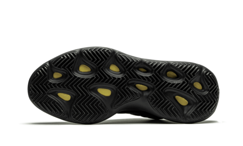 The Adidas Yeezy 700 V3 Dark Glow features a black Primeknit base, highlighted by a glow in the dark effect with hints of blue on the upper. The shoe also boasts semi-translucent stripes on the lateral sides and sits atop a thick sole equipped with adiPRENE technology.