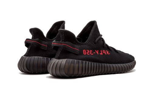The Yeezy 350 Boost V2 Bred stands out for its simplicity and elegance. Unlike most V2 models that feature a patterned print, this Yeezy has a sleek all-black upper with the SPLY-350 inscription in bold red stitching. The black semi-translucent boost sole completes the look with a touch of modernity and style.