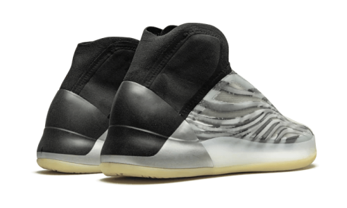 The Adidas Yeezy QNTM BSKTBL features a grey PrimeKnit base paired with an additional layer of TPU. Focused on performance, this new silhouette includes extra padding at the black ankle collar. A cream outsole completes the look.