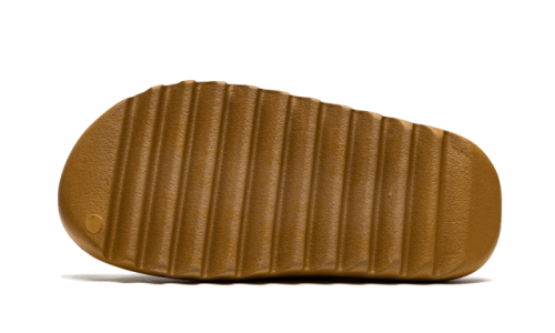 The Yeezy Slide Ochre features a clean structure made of molded EVA. It showcases a unique yellow ochre hue with a marbled texture reminiscent of the Yeezy Foam RNNR MX Sand Grey. The discreet three stripes branding and serrated sole add the finishing touches to the silhouette.