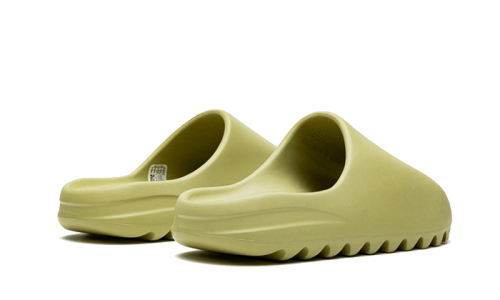 The Adidas Yeezy Slide Resin features a solid green base with openings on the half of the pair and at the front, resembling easy-to-slip-on sandals that offer unprecedented comfort. It includes EVA foam and a serrated sole, adding the final touch to this design.