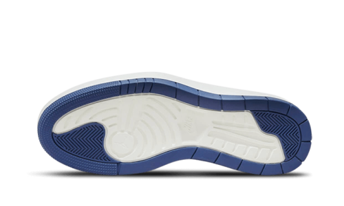 The Air Jordan 1 Elevate Low French Blue features a white leather base and royal blue leather overlays, complemented by a dual-colored lining. The Wings logo is discreetly placed on the heel, revealing only its outlines. A slightly yellowed thick midsole gives a vintage look to the model.