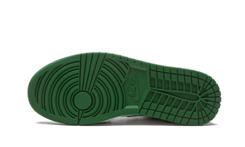 The Air Jordan 1 Mid Pine Green features an upper crafted from a combination of green and black leather, harmoniously paired with a white quarter panel. The green swoosh complements the sneaker’s outsole beautifully, creating a unified look. Attention to detail is evident with the inclusion of the Wings logo and the Jordan emblem on the tongue, accented with touches of red for a stylish finish on this AJ1 model.