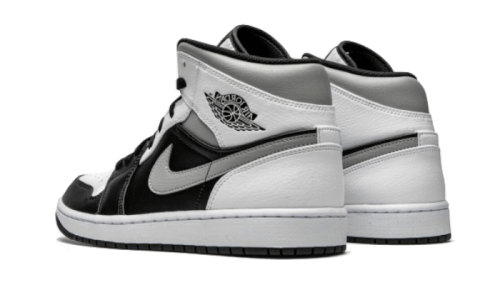 The Air Jordan 1 Mid White Shadow features a smooth leather base with alternating black and white panels for a clean and neutral design. A hint of gray on the ankles and Swoosh adds a subtle touch, while the contrasting branding elements on the tongues and Wings complete the look.