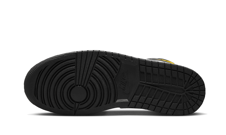 The Air Jordan 1 Mid Yellow Ochre showcases a crisp white leather base, featuring bright yellow leather overlays on the mudguard and eyelets that perfectly complement the iconic Wings logo. Meanwhile, the toebox is elegantly dressed in black leather, harmonizing with the Swoosh, the lining, the outsole, and the heel reinforcement to create a cohesive and stylish design.