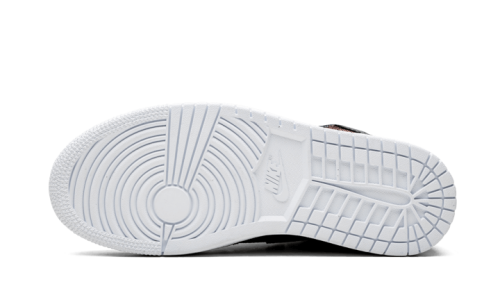 The Air Jordan 1 Retro High Fearless Metallic Rose Gold is a women’s model showcased in a striking metallic mesh finish, blending rich hues of black and red. It features the iconic Wings logo on the ankle and sleek black waxed laces, adding a touch of sophistication. The shoe is completed with a stylish two-tone sole that enhances its overall aesthetic.