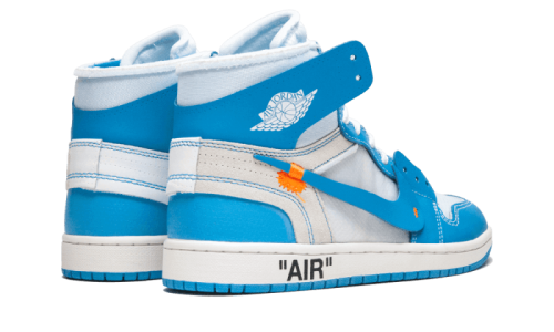 Off-White and Nike present their third collaboration on a Air Jordan 1. Following the iconic releases of the « Chicago » and « All White », Virgil Abloh has now adorned this version with a sky blue leather upper, featuring Off-White’s signature branding, including a striking red zip-tie detail on the laces.