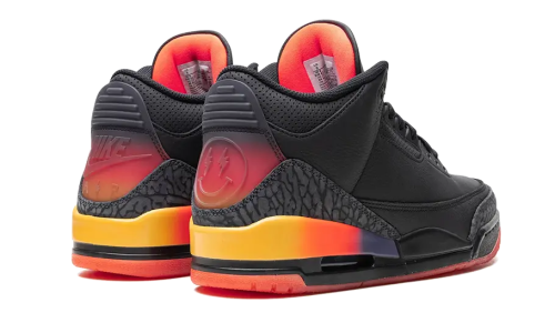 The Colombian artist J Balvin continues to impress with Jordan Brand, unveiling a new revamped version of the classic Air Jordan 3 sneakers. The Air Jordan 3 Retro J Balvin Rio features a textured black leather upper with two gray elephant print accents. Inspired by the vibrant Rio carnival, the multicolored heel adds a playful touch to the design. J Balvin’s signature smiley face logo decorates the semi-translucent heel, creating a perfect harmony with the inner tongue, transparent outsole, and iconic Jumpman logo.