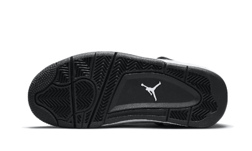 The Air Jordan 4 DIY features a smooth white leather upper adorned with intricately hand-drawn designs in bold black outlines. Additional elements like the Wings, lace eyelets, and outsole complement the color scheme beautifully.
