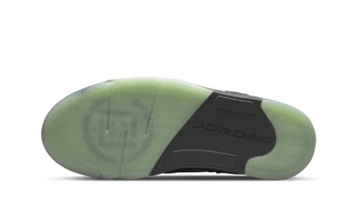 The Air Jordan 5 Low Clot features a base in black textile combined with phosphorescent TPU overlays on the tongue and panels. With a red satin lining, Tinker Hatfield’s design showcases a translucent green lace lock that mimics the gemstone’s appearance. Red laces with reflective details enhance the monochrome look of the low-top. A greenish outsole with a Glow In The Dark effect completes the revamped design.