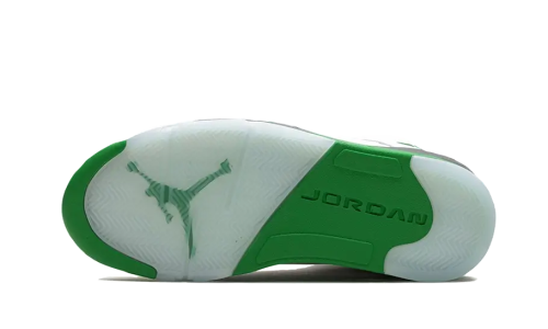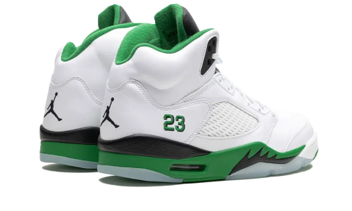 Designed by Tinker Hatfield in 1990, the Air Jordan 5 makes a comeback with a new twist. The Air Jordan 5 Retro Lucky Green features a sleek white leather upper with hints of green on the lining and midsole. The signature “shark teeth” on the sole come in black to match the tongue and eyelets, while the usual TPU cage, in white, is cleverly hidden on the upper. This iconic sneaker is sure to turn heads with its classic design and fresh colorway. Grab a pair now and step out in style!