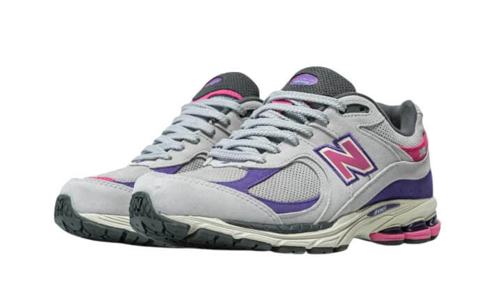 The New Balance 2002R J.Crew Rain Cloud showcases a foundation of luxurious grey suede that elegantly envelops the entire sneaker. Various pink accents are featured on the branding, while purple highlights grace the toe box and heel, adding a unique flair. To enhance this nostalgic running shoe aesthetic, a cream-colored sole equipped with ABZORB cushioning completes the design.