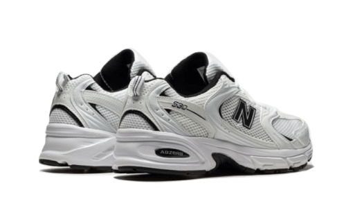 Constructed with a base of white mesh topped with white leather overlays, the New Balance 530 White Black Details also features scattered black accents throughout. For added comfort, the white sole is equipped with ABZORB technology.