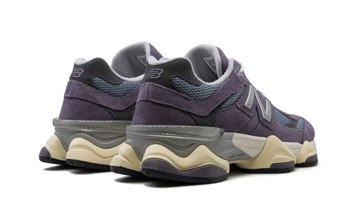 The New Balance 9060 Shadow Purple stands out with its mesh navy upper complemented by overlays in purple suede and grey leather, adding a touch of sophistication. The standout feature of this sneaker is its thick sole, supported by the cushioning technologies ABZORB and SBS, displaying a harmonious color palette that complements the overall design.