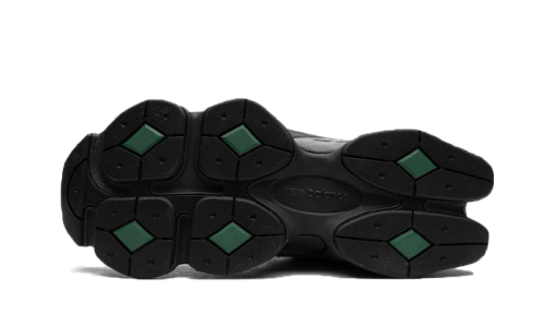 The New Balance 9060 Team Forest Green showcases a striking foundation crafted from black mesh, enhanced by overlays in pine green suede alongside accents of grey and white leather that grace the upper part. The sole features a sophisticated blend of black and grey tones with hints of blue that beautifully tie the entire design together.