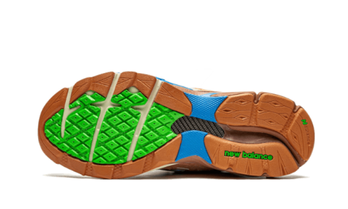 The New Balance 990v3 Joe Freshgoods Outside Clothes showcases a base crafted from azure mesh, complemented by various shades of brown found in the leather and suede overlays. There are also distinctive pops of apple green seen in the designer’s initials and the nickname featured on the heels, a bright blue sky depicted on the insoles, and a striking tricolored ENCAP sole.