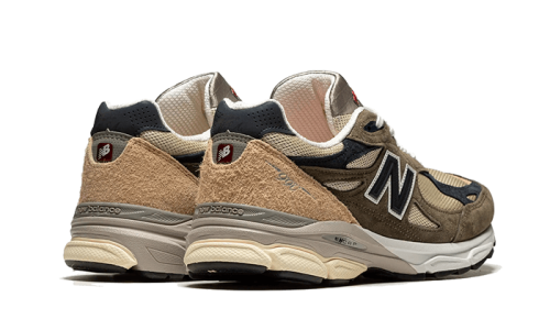 The New Balance 990 v3 Made In USA Green Cream features a beige mesh base with mesh-like appearance. The addition of green suede overlays gives a touch of luxury to the premium structure made in the USA. A fuzzy suede panel on the heel adds contrast to the whole look. Cream laces adorn the tongue, matching the lateral N logo. The white midsole with beige details and ENCAP cushioning completes the design from 2012.