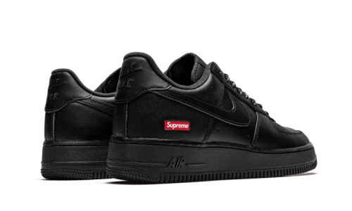 After weeks of anticipation and teasing, Nike and Supreme have finally unveiled a new collaboration sneaker on the iconic Air Force 1 model. The Nike Air Force 1 Low Black Supreme features a clean all-black leather upper, matching laces, sole, and tonal swoosh. The signature red Supreme box logo on the heel adds the perfect finishing touch.
