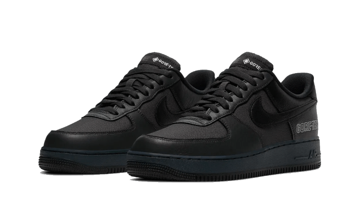 The Nike Air Force 1 Low Gore-Tex Black showcases a stylish upper composed of breathable mesh, complemented by tonal black leather overlays. It features cutting-edge Gore-Tex technology, providing exceptional waterproof capabilities to keep your feet dry in any weather. A shiny silver “GORE-TEX” logo adorns the quarter panel and tongue. The midsole offers a subtle contrast to the predominately black aesthetic, while the outsole mirrors the leather detailing in the same hue.