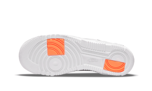 The Nike Air Force 1 Low Pixel White Orange showcases a pristine white leather exterior complemented by pastel orange accents on the branding, with a darker hue featured on the rear reinforcement. Notable updates include an embedded lateral swoosh, a fresh logo on the tongue and heel, as well as a pixelated design element on the midsole. The piece is completed with a signature deformed sole that embodies the essence of the Pixel, incorporating two blocks in the vibrant color of the Syracuse University.