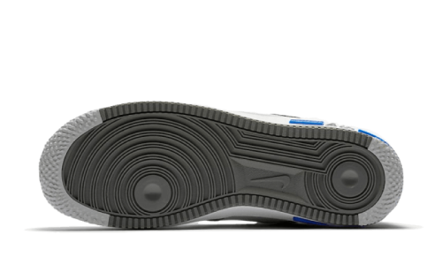 The Air Force 1 Low React Wolf Grey showcases a combination of leather and mesh in two contrasting shades of grey, accentuated by pops of neon yellow and royal blue strategically placed on the shoe. A bold Swoosh outlined purely in white, along with D/MS/X branding on the inner sides, and laces that match the upper complete this eye-catching design.