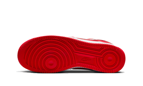 The Nike Air Force 1 Low Retro Since ’82 University Red showcases a vibrant red leather upper, complemented by white leather accents, including the impressive Swoosh on the side and the midsole. The branding on the heel and tongue enhances this striking design with their pristine white hue.