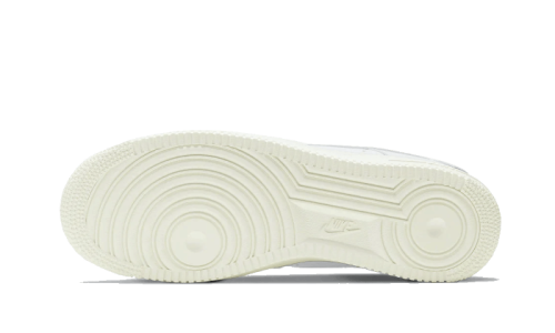 The Nike Air Force 1 Low Valentine’s Day (2021) features a pristine white leather upper, beautifully accented by cream details on the Swoosh and midsole. A vivid red heart on the quarter panel stands out as a symbol of Valentine’s Day, adding a touch of love to the design. The brand name “NIKE AIR” is prominently displayed on both the tongue and the heel.