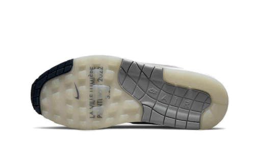 The Nike Air Max 1 La Ville Lumière features a white mesh upper combined with an iridescent material with rainbow hues. Grey leather covers the mudguard and the lateral swoosh. Its tongue is adorned with navy blue and displays a “3.26” in reference to the Air Max range anniversary. The inscription “La Ville Lumière – Spring 2022” reminiscent of a prestigious Parisian luxury house is also present on the insole and the translucent outsole.