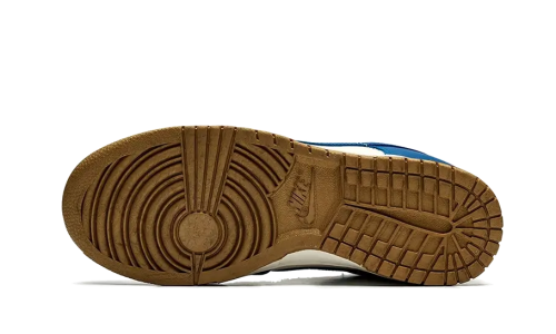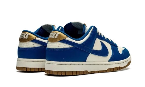 Introducing the Nike Dunk Low Kansas City Royals, featuring a white leather base complemented by blue leather accents. A touch of gold on the sole, tongue, and heel tab adds a perfect contrast to the overall design.