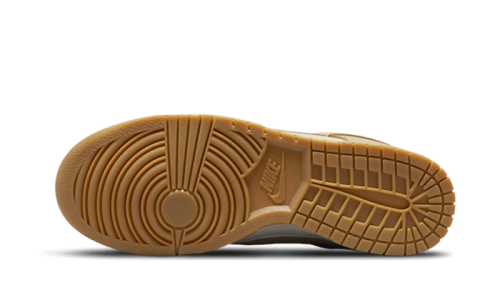The Nike Dunk Low Khaki Suede Gum features a gorgeous beige suede upper complemented by accents of slightly yellow grained leather. Vibrant yellow branding on the tongue and heel adds a pop of color, all tied together with a clean white midsole and gumsole.