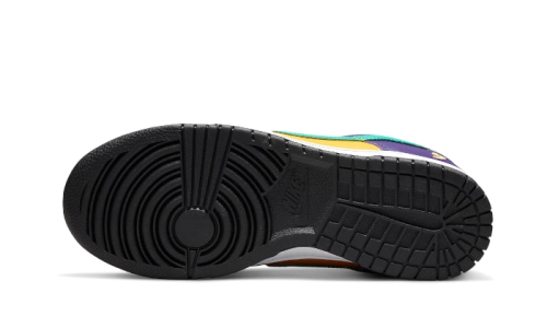 The Nike Dunk Low Lisa Leslie features a vibrant yellow leather base adorned with purple leather overlays and a striking turquoise Swoosh. These colors represent the Los Angeles Sparks, the WNBA team for which Lisa Leslie showcased her skills for twelve years. As the first female athlete to successfully complete a dunk in a game, this legendary Californian player has her number 9 intricately embroidered on the heel of the shoe.