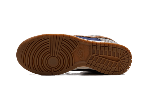 This Nike Dunk Low Premium Tweed Corduroy showcases a rich navy corduroy base, complemented by vibrant tweed overlays, crafted from raw wool for a touch of sophistication. The iconic Swoosh on the side shines in a striking mustard corduroy, while a refined off-white and rubber sole brings the entire look together.