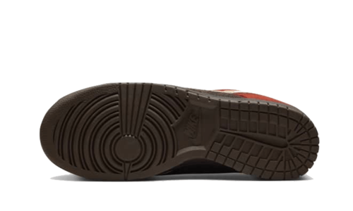 The Nike Dunk Low Red Panda showcases a rich dark brown suede base, elegantly complemented by beige leather overlays. Additionally, deep red suede accents can be found at the back of the shoe, harmonizing beautifully with the heel tab and the tag on the tongue.