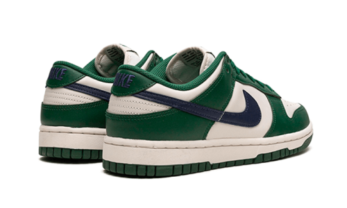 The Nike Dunk Low Retro Gorge Green Midnight Navy features a base in off-white leather beautifully complemented by layers of green leather. A navy blue swoosh adorns the panels adding a touch of contrast to the design.