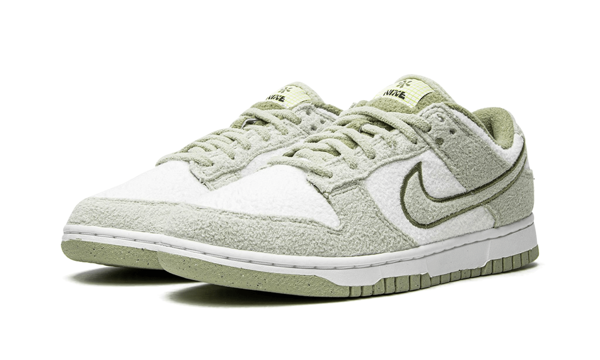 The Nike Dunk Low SE Fleece Green showcases a soft fleece material that envelops the entire upper. Stylish melon green highlights are harmoniously paired with pure white sections, which perfectly complement the laces on the tongue. The entire design is set upon a white sole crafted with Nike Grind technology.