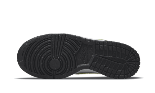 The Nike Dunk Low Signal Blue Lemon Twist features a white leather upper with thick black leather overlays. A neon yellow velcro Swoosh wraps around the panels of the silhouette, adding a touch of originality. Black and red branding on the tongue and heel stand out against the blue inner lining.