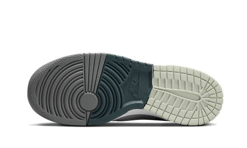 The Nike Dunk Low Split Deep Jungle showcases an upper crafted from leather in a light green tone, accented by darker green leather panels. Complementing this design is a crisp white Swoosh, which aligns beautifully with the heel tab and midsole. Completing the look is a sole that combines shades of grey and green, tying the entire piece together.
