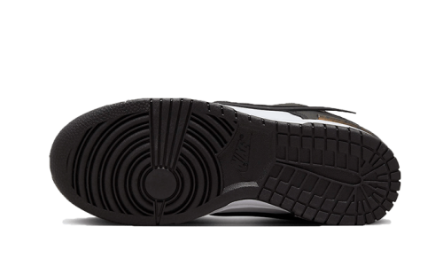 This silhouette features a classic color blocking design, with a white leather base accented by black leather overlays. The unique aspect of this shoe lies in the exaggerated black reinforcements on the heel and forefoot. This padded effect can also be seen on the back collar and on the side swoosh, reminiscent of past collaborations with AMBUSH. Double-layered panels on the upper, along with a white midsole and black stitching on the outsole, complete this revamped look.