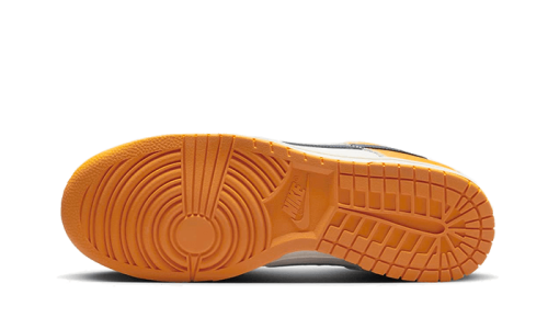 The Nike Dunk Low Wear and Tear showcases a foundation of white leather, complemented by vibrant orange leather overlays and a stylish navy leather Swoosh that matches the heel tab. Its uniqueness is highlighted by treated finishes that lend a vintage, worn-in charm to the design.