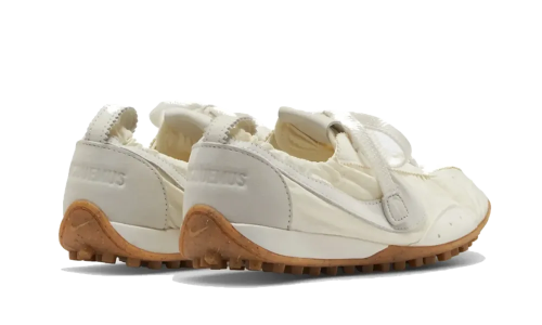 The Nike Jacquemus Moon Shoe in White emerges from a unique collaboration between the renowned sportswear brand and the French fashion house Jacquemus, celebrated for its sunny, minimalist aesthetic. This innovative partnership reinterprets the Moon Shoe silhouette—a nod to Nike’s roots and the iconic design crafted by Bill Bowerman in the 1970s—presenting it in a sleek, modern rendition. The pristine white upper showcases various textures and materials, creating a look that is both understated and refined, staying true to Jacquemus’s identity. The treaded sole echoes the classic design of the original Moon Shoe while providing contemporary comfort suited for everyday wear.