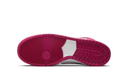 The Nike SB Dunk High Sweet Beet features a base in slightly off-white leather enhanced by raspberry-colored leather overlays. This two-tone combination is also reflected in the sole, while the model’s comfort is heightened by a padded collar.