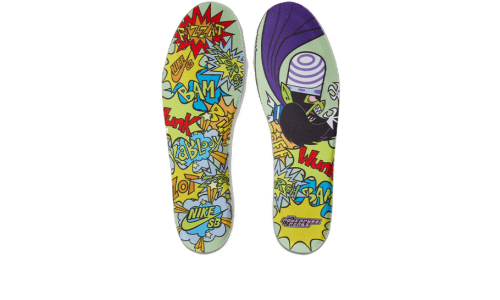 At the end of the year 2023, Nike has partnered with the Powerpuff Girls for a highly anticipated pack of three SB Dunk Low sneakers. Each shoe in this pack pays tribute to one of the heroines from the animated series created by Craig McCracken. The design of the Nike SB Dunk Low The Powerpuff Girls Bubbles features a textured blue leather base resembling snake skin, with embroidered eyes on the heels and the complete silhouette of Bubbles printed inside the box. The yellow Swoosh matches the character’s hair color.