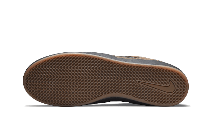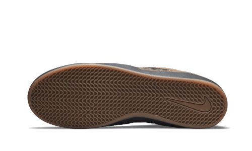 The Nike SB Ishod Wair Light Olive Black features a rich brown suede base complemented by wavy mesh overlays that wrap around the silhouette’s panels. The eyelets sport an olive green hue, adding a striking contrast against the black tongue. Subtle red details can be found on the inner lining, lace reinforcements, and the Mini Swoosh embroidery on the toe box, alongside the “ISHOD” branding on the tongue. This design is anchored by a mixed sole that incorporates Nike React technology encased in a gumsole.