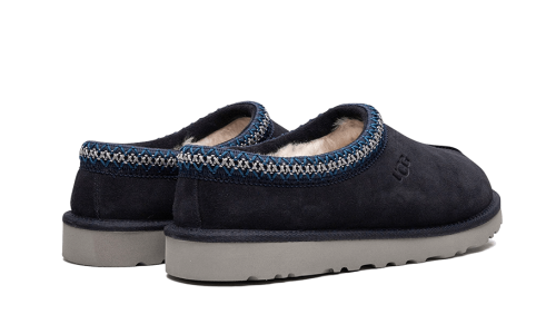 UGG presents a new version of its popular slipper, the Tasman. The UGG Tasman Slipper True Navy features a navy blue suede upper, along with a braided detail in navy blue and white recycled polyester that wraps around the ankle. The UGG branding is placed on the side panel while a raised stitching detail reinforces the front of the design. Comfort is ensured with a foam outsole and a UGGPLUSH lining made of sheepskin and recycled wool on the inside. This updated Tasman combines simplicity and comfort to keep you warm and stylish during the winter season.